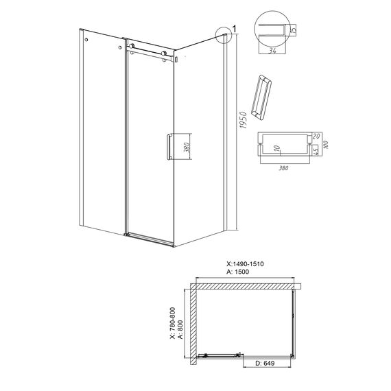 Душевое ограждение Grossman Classic 100.K33.04.150.10.00-200.K33.04.80.10.00