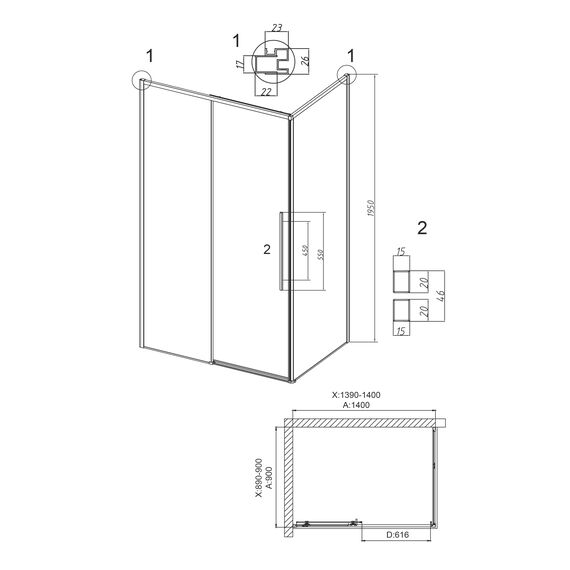 Душевое ограждение Grossman Galaxy 100.K33.01.140.10.00-200.K33.01.90.10.00