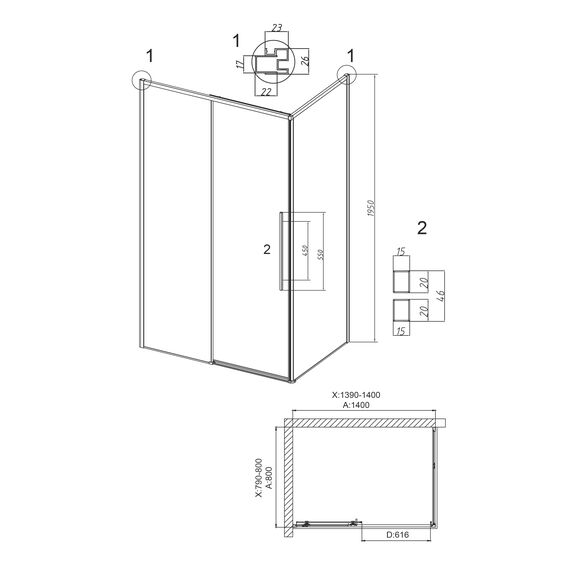 Душевое ограждение Grossman Galaxy 100.K33.01.140.42.10-200.K33.01.80.42.10