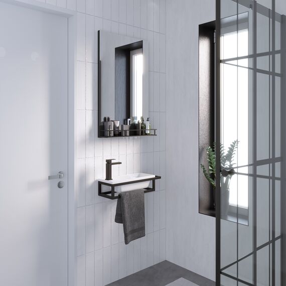 Консоль подвесная "МЕТРИС-50 см" черная с прав. полотенцедержателем (ум. Модуль-50)