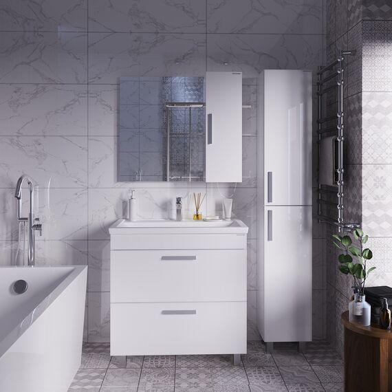 Пенал выполнен из влагостойких материалов устойчивых к перепадам температуры и высокой влажности. Корпус ЛДСП, фасады МДФ в пленке.