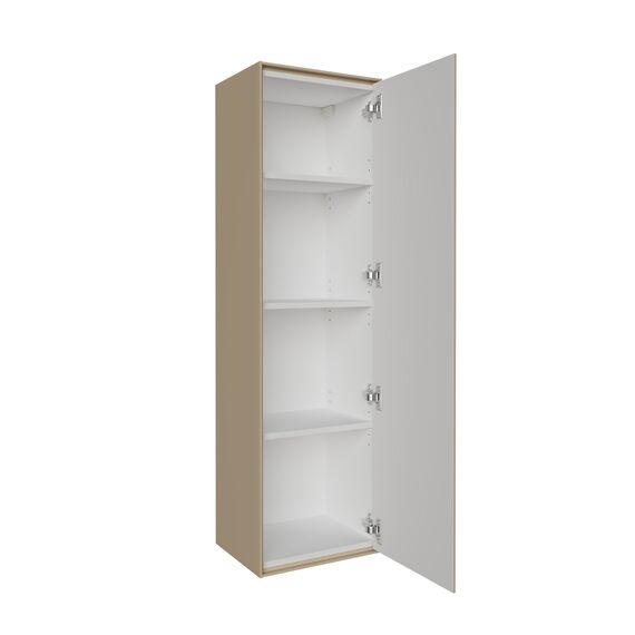 Подвесной пенал “КРИСТАЛЛ” 35 см, универсальный, бежевый матовый — компактный и стильный элемент мебели для ванной комнаты. Корпус и фасады выполнены из МДФ, окрашенного в бежевый цвет с матовым финишем. Фасад с вертикальным рифлением придаёт изысканный внешний вид, а безручечный дизайн и петли с доводчиком обеспечивают плавное и бесшумное закрытие.Внутри — 4 вместительные полки из ЛДСП для удобного хранения.