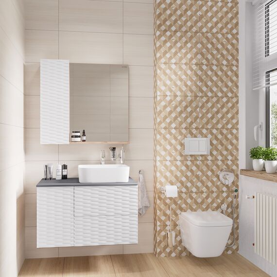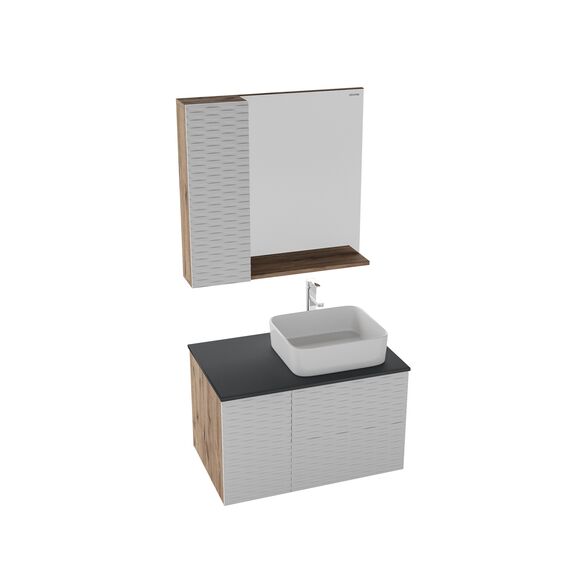 Зеркальный шкаф изготовлен из ЛДСП, устойчивой к механическим воздействиям, перепадам температур и высокой влажности.