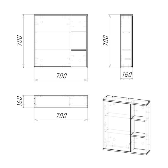 Зеркальный шкаф выполнен из влагостойкого ЛДСП, устойчивый к перепадам температур и высокой влажности.