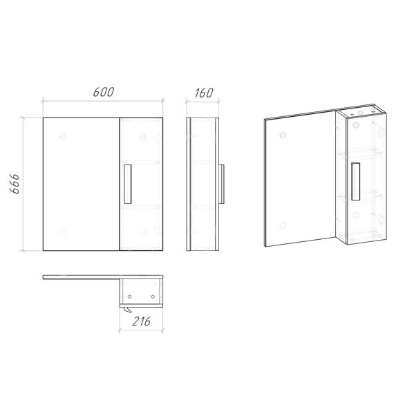 Шкаф-зеркало имеет петли с доводчиками, что обеспечивает плавное и бесшумное закрывание дверцы. Внутренние полочки также выполнены из ЛДСП.