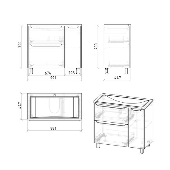 Ручки и подвесы для крепления тумбы - в комплекте.