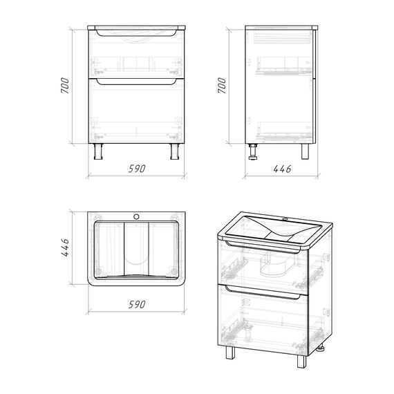 Ручки и подвесы для крепления тумбы - в комплекте.