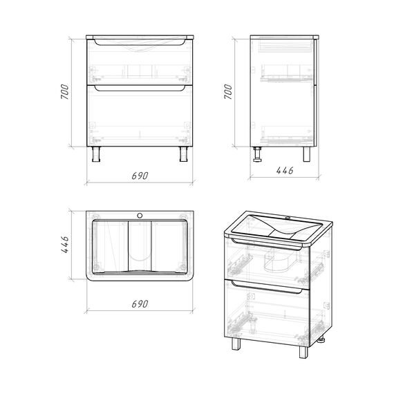 Ручки и подвесы для крепления тумбы - в комплекте.