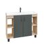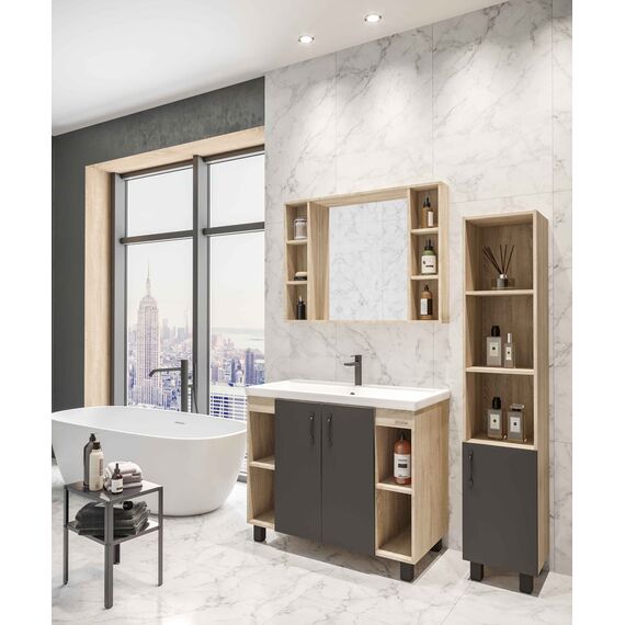 Корпус тумбы выполнен из ЛДСП, фасад - из МДФ в матовой пленке, устойчивый к перепадам температур и высокой влажности.