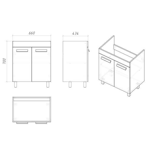 Тумба оснащена двумя распашными дверями. Это обеспечивает удобное размещение и хранение различных предметов и аксессуаров.