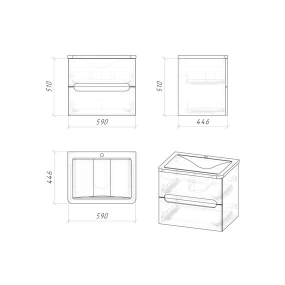 Ручки и подвесы для крепления тумбы - в комплекте.