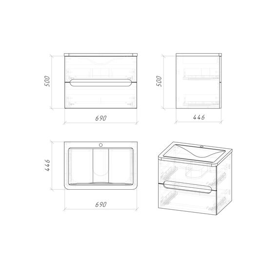 Ручки и подвесы для крепления тумбы - в комплекте.