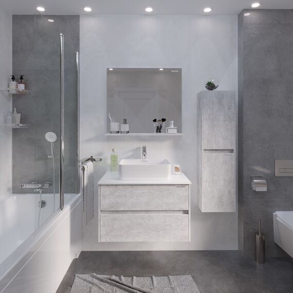 Тумба подвесная "ЭДВАНС-80 см" с 2-я ящ. цемент светлый (ум.GR-3016)