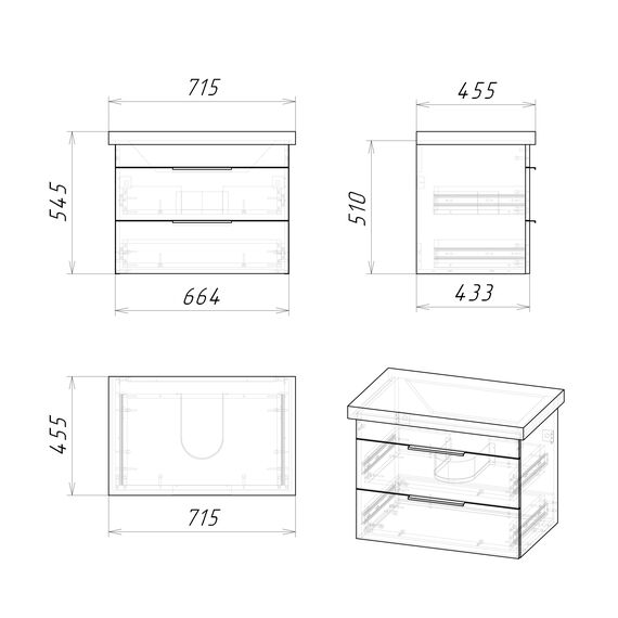 Ручки и подвесы для крепления тумбы - в комплекте.