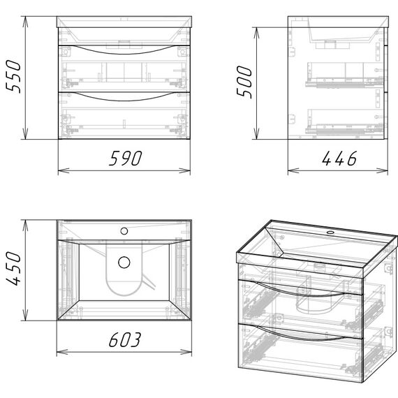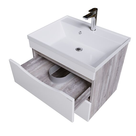 Тумба подвесная "ТАЛИС-60 см" с 2-я ящ.(ум.Classika-60) бетон пайн/белый глянец