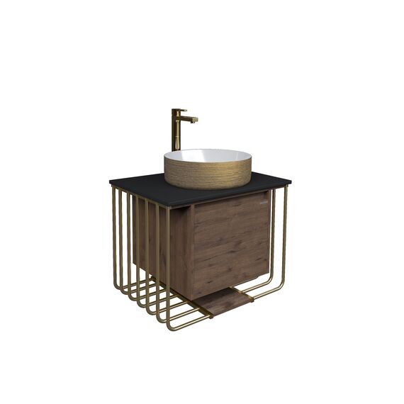 Тумба подвесная "ВИНТАЖ-70 см" с 1-м ящ. веллингтон/металл золото (ум.GR-3013)