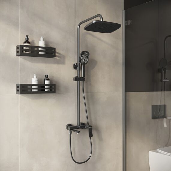 Душевая стойка Advans 500.K35.09.420 ТМ GROSSMAN в брашированном графитовом исполнении с тропическим душем, лейкой и изливом - это идеальное сочетание высокого качества и доступной цены. Она подходит для установки в душевых углах, перегородках, а так же над ванной. Ключевые особенности: