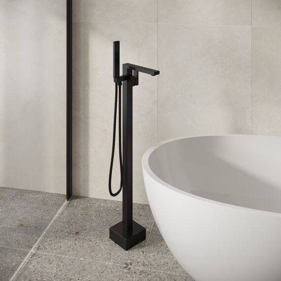 Смеситель напольный для ванны Falcon 530.K35.08.210 ТМ GROSSMAN в черном матовом исполнении с ручны душем и изливом - это идеальное сочетание высокого качества и доступной цены. Она подходит для установкина пол к отдельностоящим ваннам.