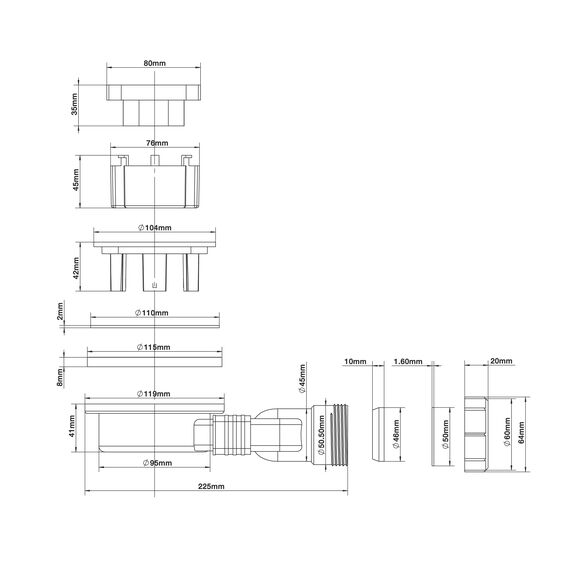 Сифон GR-S91 для каменных душевых поддонов Grossman Strong