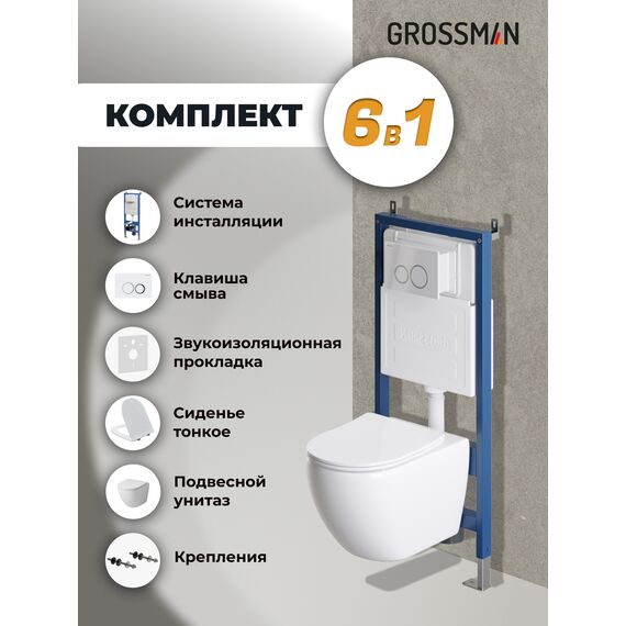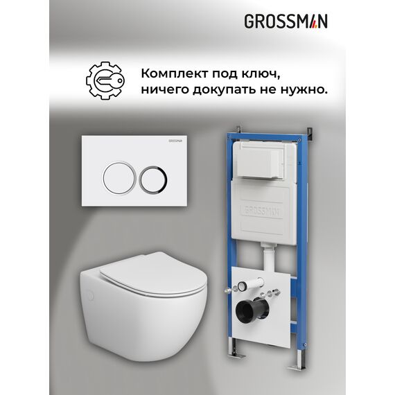 Комплект 3 в 1: Grossman инсталляция 900.K31.01.000+клавиша 700.K31.01.000.000 белый+унитаз GR-4411SQ, 3 места