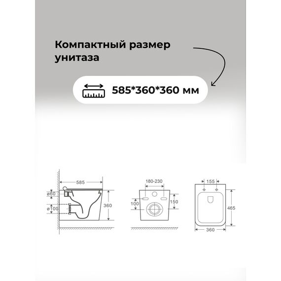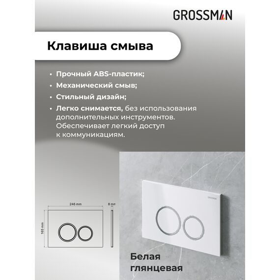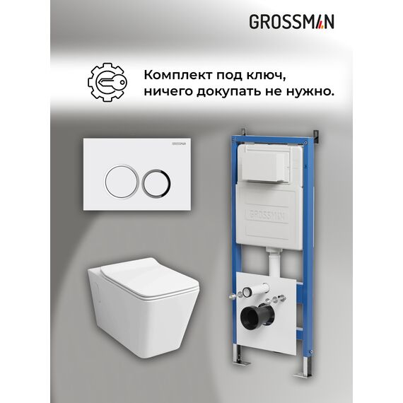 Комплект 3 в 1: Grossman инсталляция 900.K31.01.000+клавиша 700.K31.01.000.000 белый+унитаз GR-4414S, 3 места