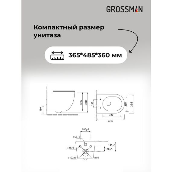 Комплект 3 в 1: Grossman инсталляция 900.K31.01.000+клавиша 700.K31.01.100.100 белый+унитаз GR-4455S, 3 места