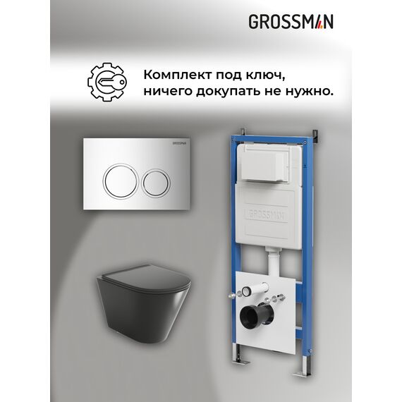 Комплект 3 в 1: Grossman инсталляция 900.K31.01.000+клавиша 700.K31.01.100.100 хром глянцевый+унитаз GR-4477BMS, 3 места