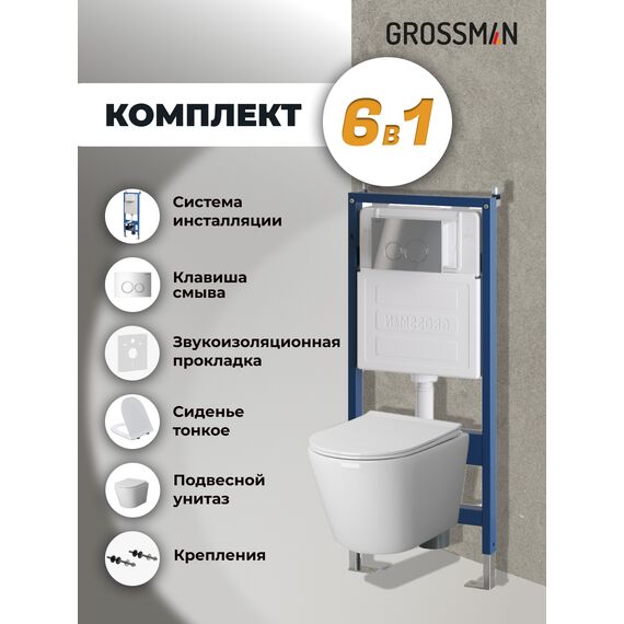 Комплект 3 в 1: Grossman инсталляция 900.K31.01.000+клавиша 700.K31.01.100.100 хром глянцевый+унитаз GR-4478SQ, 3 места