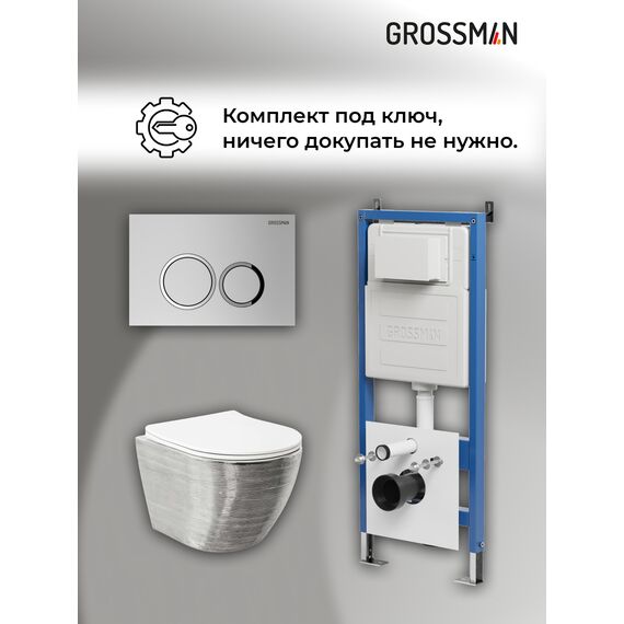 Комплект 3 в 1: Grossman инсталляция 900.K31.01.000+клавиша 700.K31.01.110.110 хром матовый+унитаз GR-4455SWS, 3 места