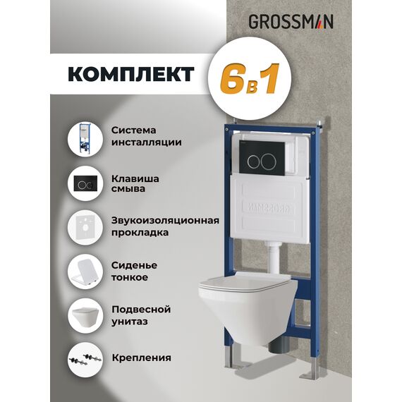 Комплект 3 в 1: Grossman инсталляция 900.K31.01.000+клавиша 700.K31.01.210.210 черный матовый+унитаз GR-4440S, 3 места