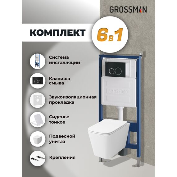 Комплект 3 в 1: Grossman инсталляция 900.K31.01.000+клавиша 700.K31.01.210.210 черный матовый+унитаз GR-4441S, 3 места