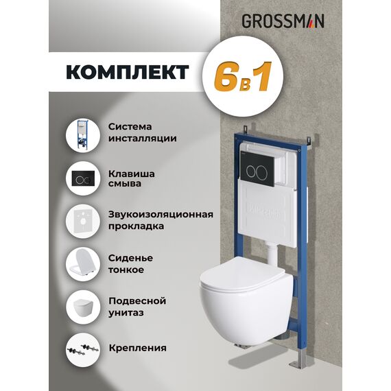 Комплект 3 в 1: Grossman инсталляция 900.K31.01.000+клавиша 700.K31.01.210.210 черный матовый+унитаз GR-4455S, 3 места