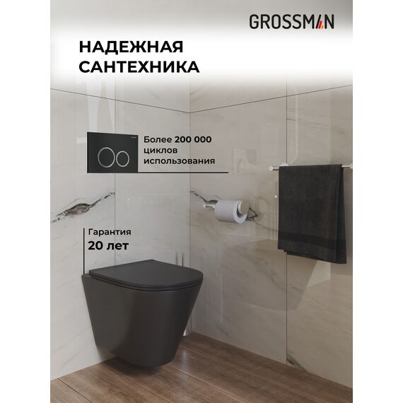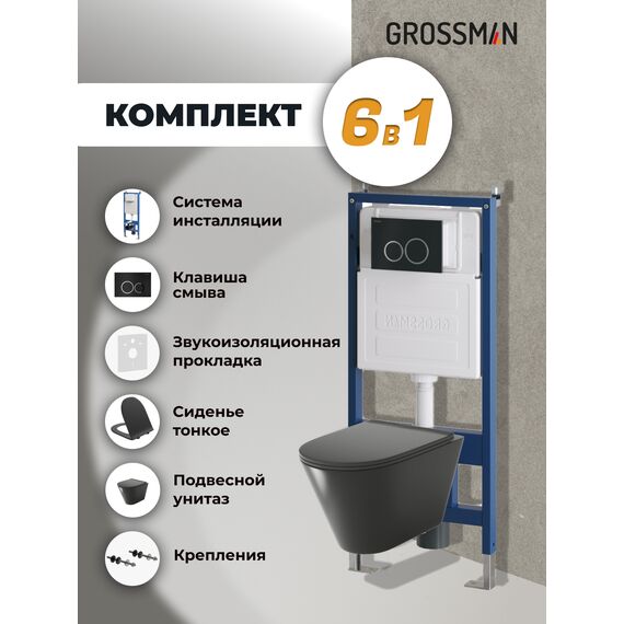 Комплект 3 в 1: Grossman инсталляция 900.K31.01.000+клавиша 700.K31.01.210.210 черный матовый+унитаз GR-4477BMS, 3 места