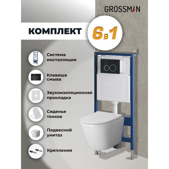 Комплект 3 в 1: Grossman инсталляция 900.K31.01.000+клавиша 700.K31.01.210.210 черный матовый+унитаз GR-4478SQ, 3 места