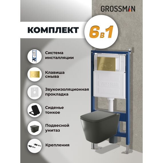Комплект 3 в 1: Grossman инсталляция 900.K31.01.000+клавиша 700.K31.01.300.300 золото глянцевый+унитаз GR-4441BMS, 3 места