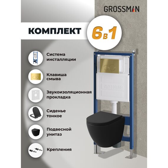 Комплект 3 в 1: Grossman инсталляция 900.K31.01.000+клавиша 700.K31.01.300.300 золото глянцевый+унитаз GR-4455BMSQ, 3 места