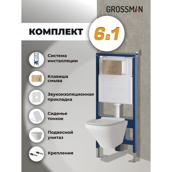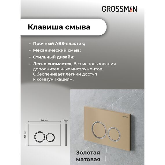 Комплект 3 в 1: Grossman инсталляция 900.K31.01.000+клавиша 700.K31.01.310.310 золото матовый+унитаз GR-4440S, 3 места