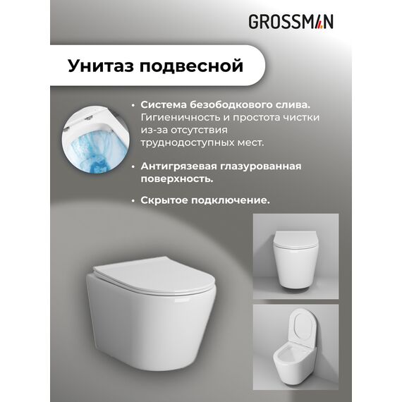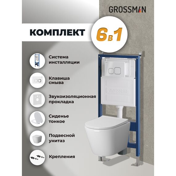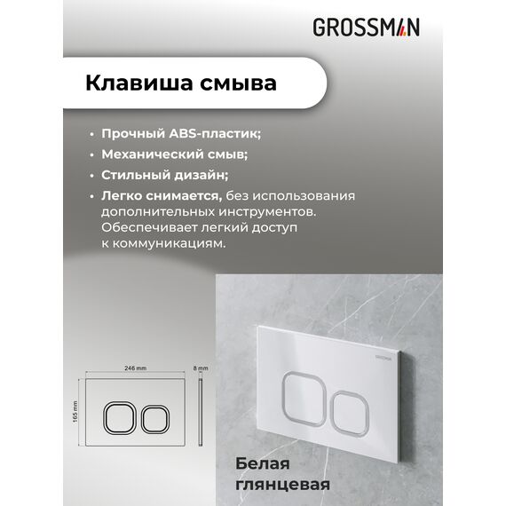 Комплект 3 в 1: Grossman инсталляция 900.K31.01.000+клавиша 700.K31.02.000.000 белый+унитаз GR-4478S, 3 места