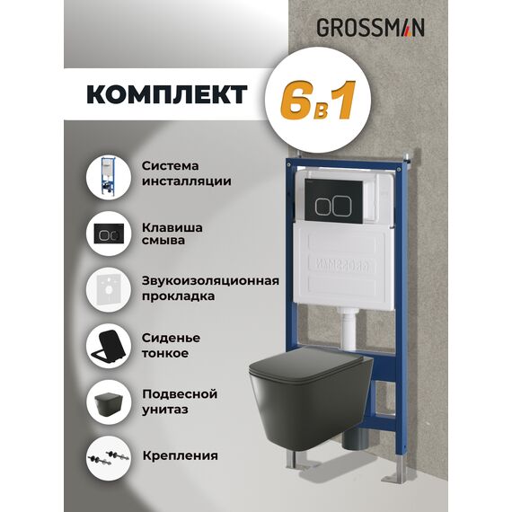 Комплект 3 в 1: Grossman инсталляция 900.K31.01.000+клавиша 700.K31.02.210.210 черный матовый+унитаз GR-4441BMS, 3 места