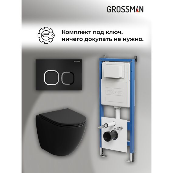 Комплект 3 в 1: Grossman инсталляция 900.K31.01.000+клавиша 700.K31.02.210.210 черный матовый+унитаз GR-4455BMSQ, 3 места