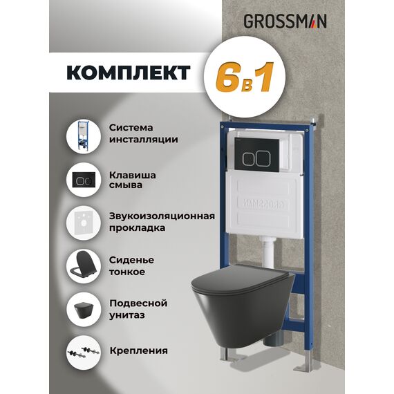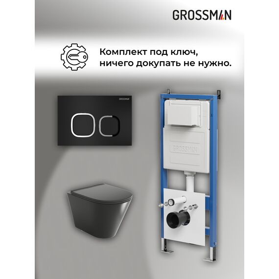 Комплект 3 в 1: Grossman инсталляция 900.K31.01.000+клавиша 700.K31.02.210.210 черный матовый+унитаз GR-4477BMS, 3 места