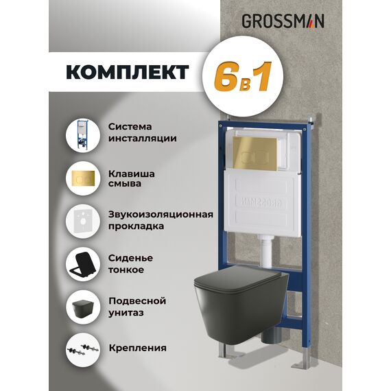 Комплект 3 в 1: Grossman инсталляция 900.K31.01.000+клавиша 700.K31.02.300.300 золото глянцевый+унитаз GR-4441BMS, 3 места