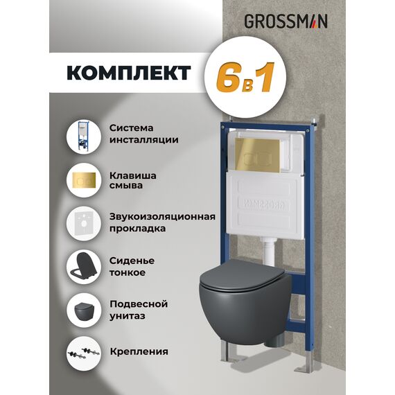 Комплект 3 в 1: Grossman инсталляция 900.K31.01.000+клавиша 700.K31.02.300.300 золото глянцевый+унитаз GR-4455GMS, 3 места
