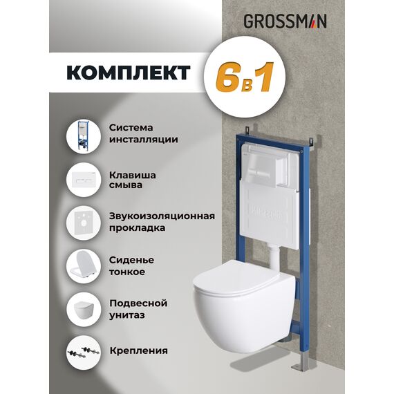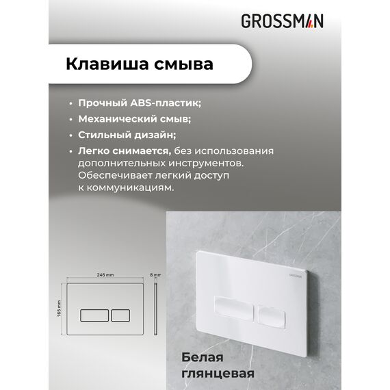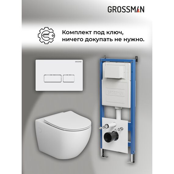 Комплект 3 в 1: Grossman инсталляция 900.K31.01.000+клавиша 700.K31.03.000.000 белый+унитаз GR-4411S, 3 места