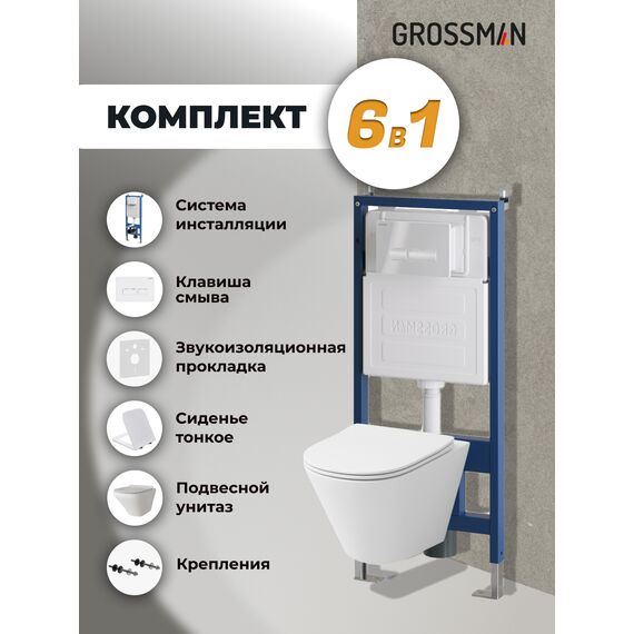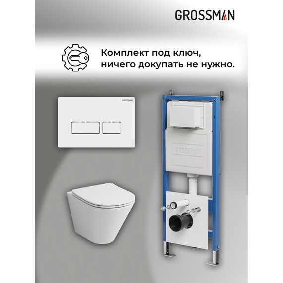 Комплект 3 в 1: Grossman инсталляция 900.K31.01.000+клавиша 700.K31.03.000.000 белый+унитаз GR-4477S, 3 места