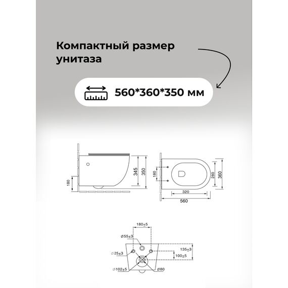 Комплект 3 в 1: Grossman инсталляция 900.K31.01.000+клавиша 700.K31.03.110.110 хром матовый+унитаз GR-4411S, 3 места