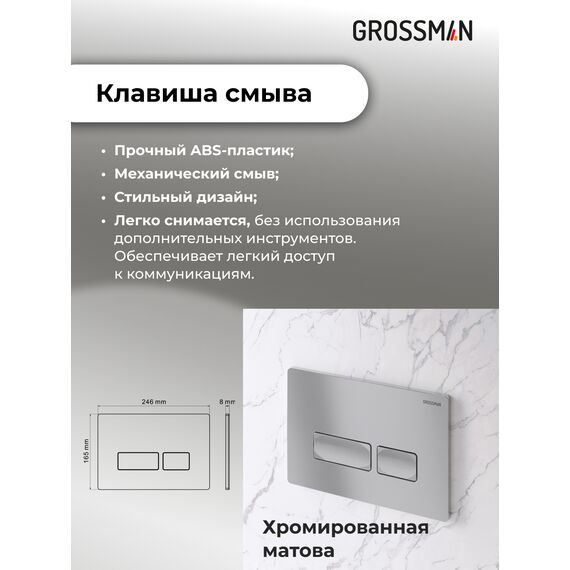 Комплект 3 в 1: Grossman инсталляция 900.K31.01.000+клавиша 700.K31.03.110.110 хром матовый+унитаз GR-4477BMS, 3 места