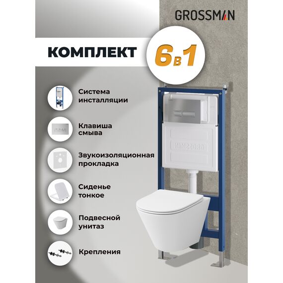 Комплект 3 в 1: Grossman инсталляция 900.K31.01.000+клавиша 700.K31.03.110.110 хром матовый+унитаз GR-4477S, 3 места