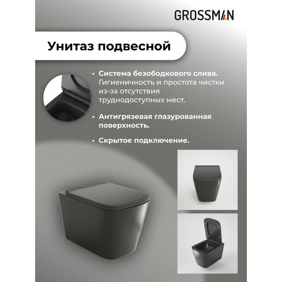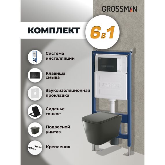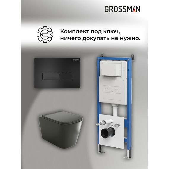 Комплект 3 в 1: Grossman инсталляция 900.K31.01.000+клавиша 700.K31.03.210.210 черный матовый+унитаз GR-4441BMS, 3 места