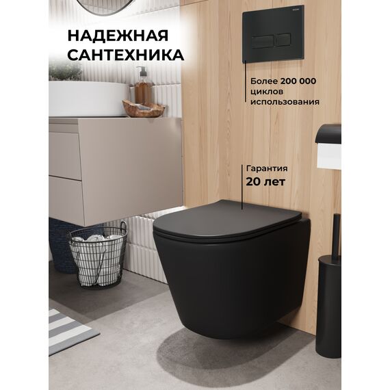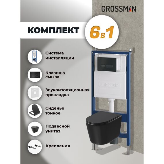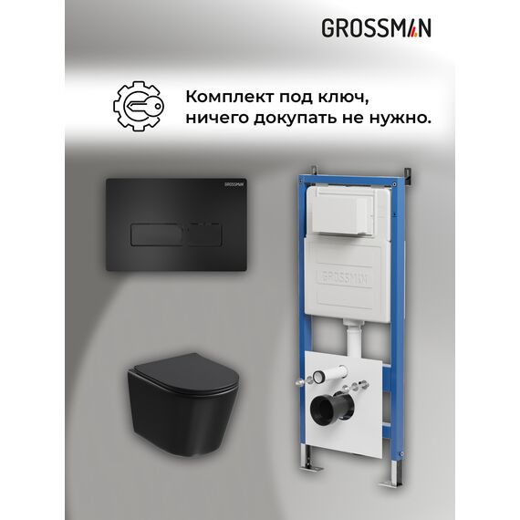 Комплект 3 в 1: Grossman инсталляция 900.K31.01.000+клавиша 700.K31.03.210.210 черный матовый+унитаз GR-4477BMSQ, 3 места